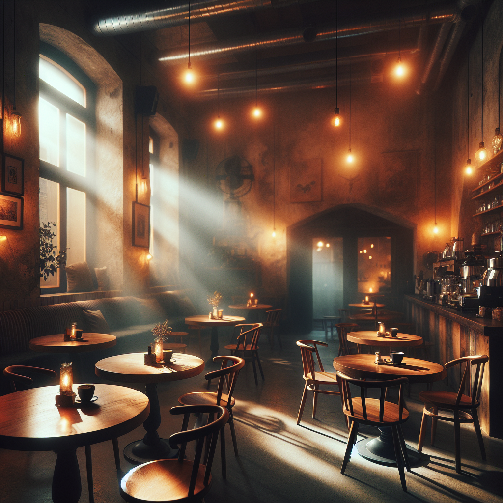 Cozy Cafe Interior With Wooden Tables An