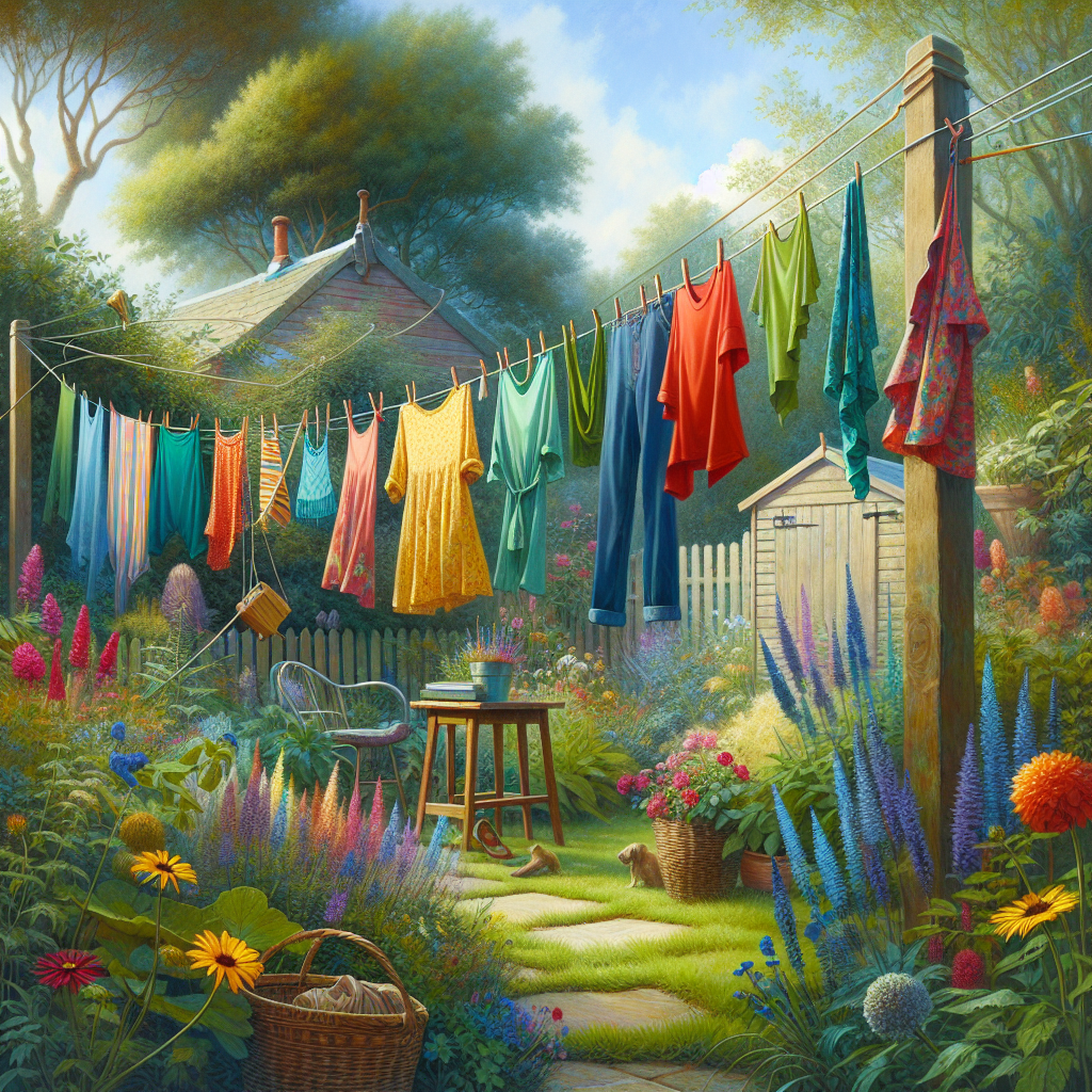 A Backyard Clothesline With Various Colo