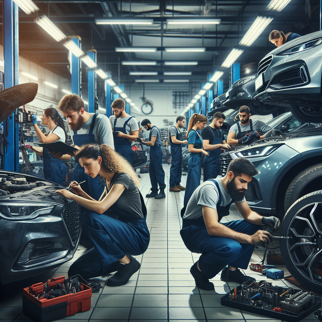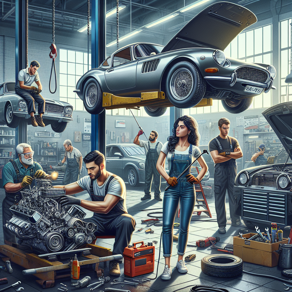 A Bustling Auto Repair Shop With Mechani