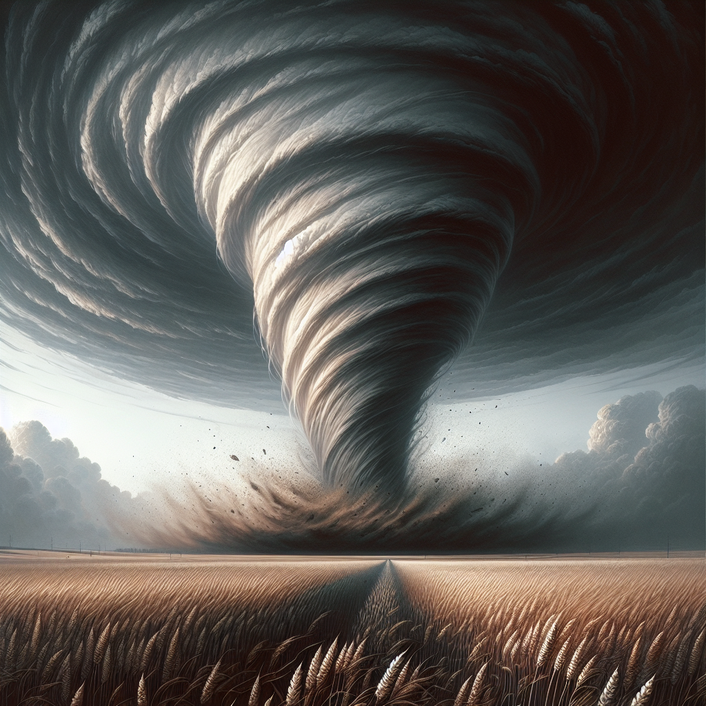 A Dramatic View Of A Tornado Funnel Clou