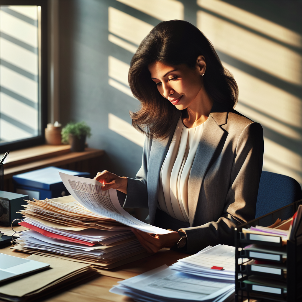A Teacher Organizing Papers And Files In