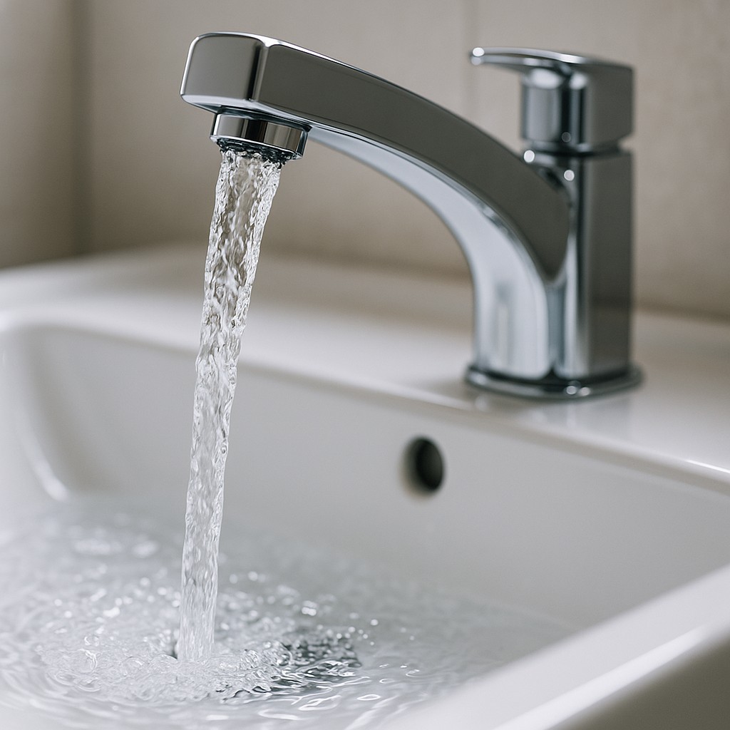 Crystal Clear Water Flowing From A Moder