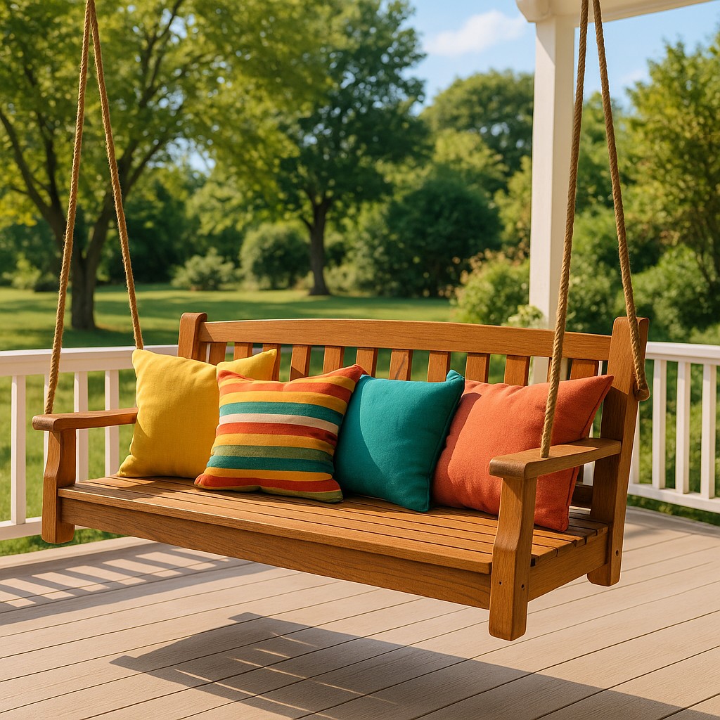 Handcrafted Wooden Porch Swing With Colo