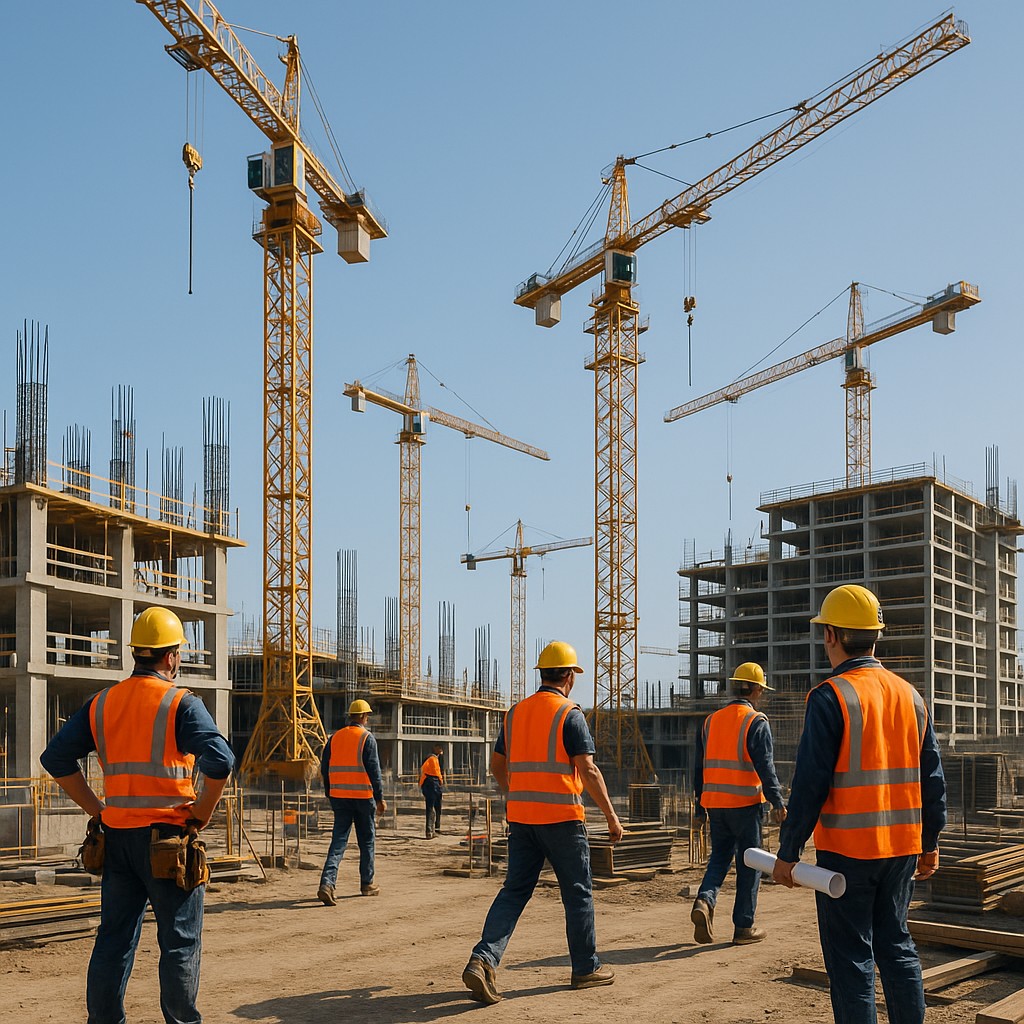 A Modern Construction Site With Cranes A
