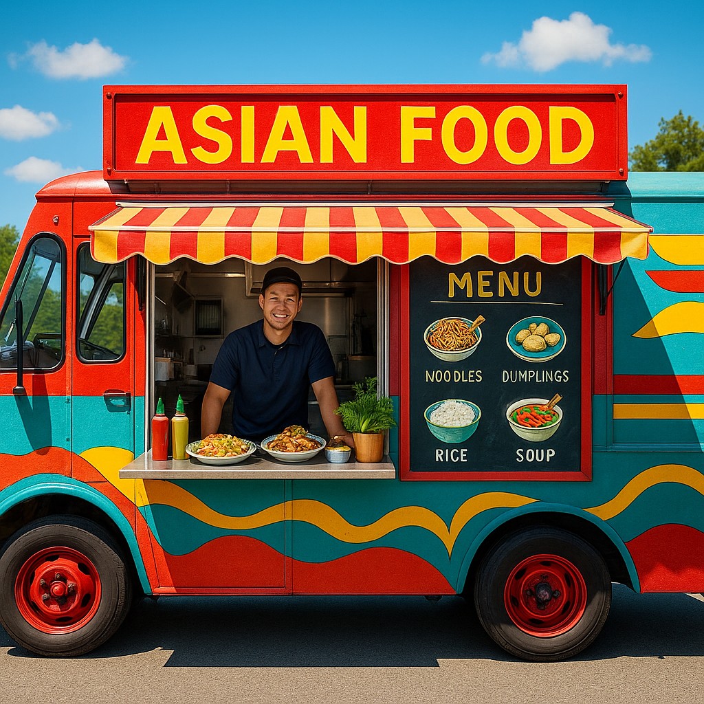 Colorful Asian Food Truck Serving Delici