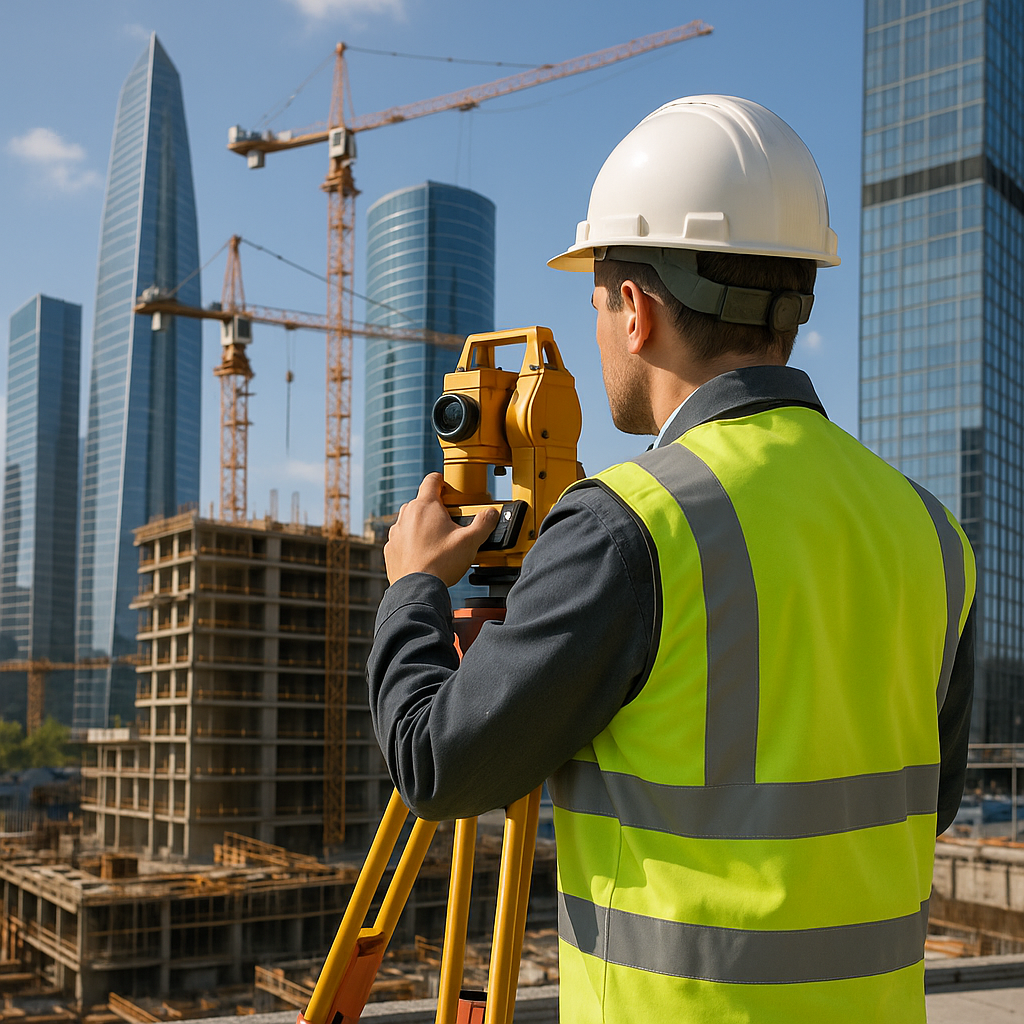An Engineer Surveying A Modern Construct
