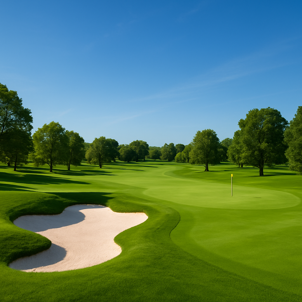 A Golf Course With A Lush Green Landscap